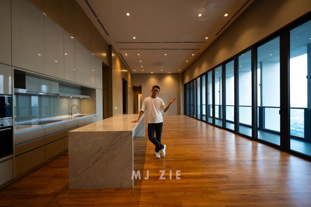 Upon entering this apartment, you’ll be greeted with an open and spacious living and dining area with a modern and sleek design, perfect for entertaining or relaxing with family and friends. There are two kitchens in this apartment, a Dry kitchen and Wet Kitchen (As common in Penang, Malaysia 🤣) The dry kitchen is fully equipped with high-end appliances, like a built-in convection oven and microwave with a french door refrigerator and ample storage space ensures you have everything you need to whip up a delicious meal. 🧑🏻🍳